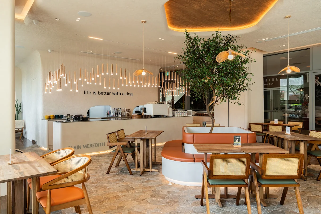 This one leans community-focused: coffee, small bites, and a space where dogs are very much part of the scene.